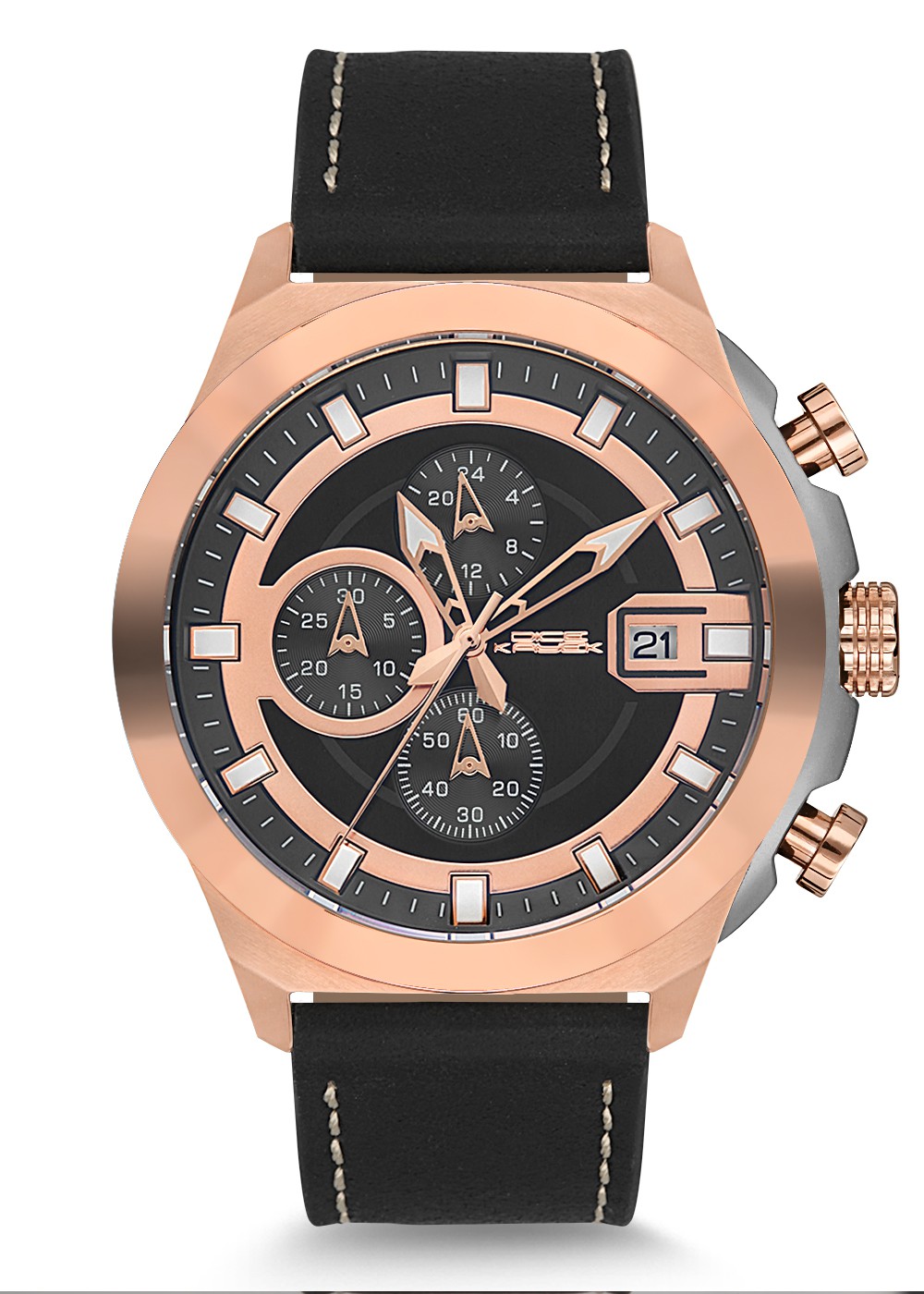 Erkek - Kronometre - Rose - Si̇yah - Doğal Deri̇ Kordon - Si̇yah - 3 Atm - Dice Kayek