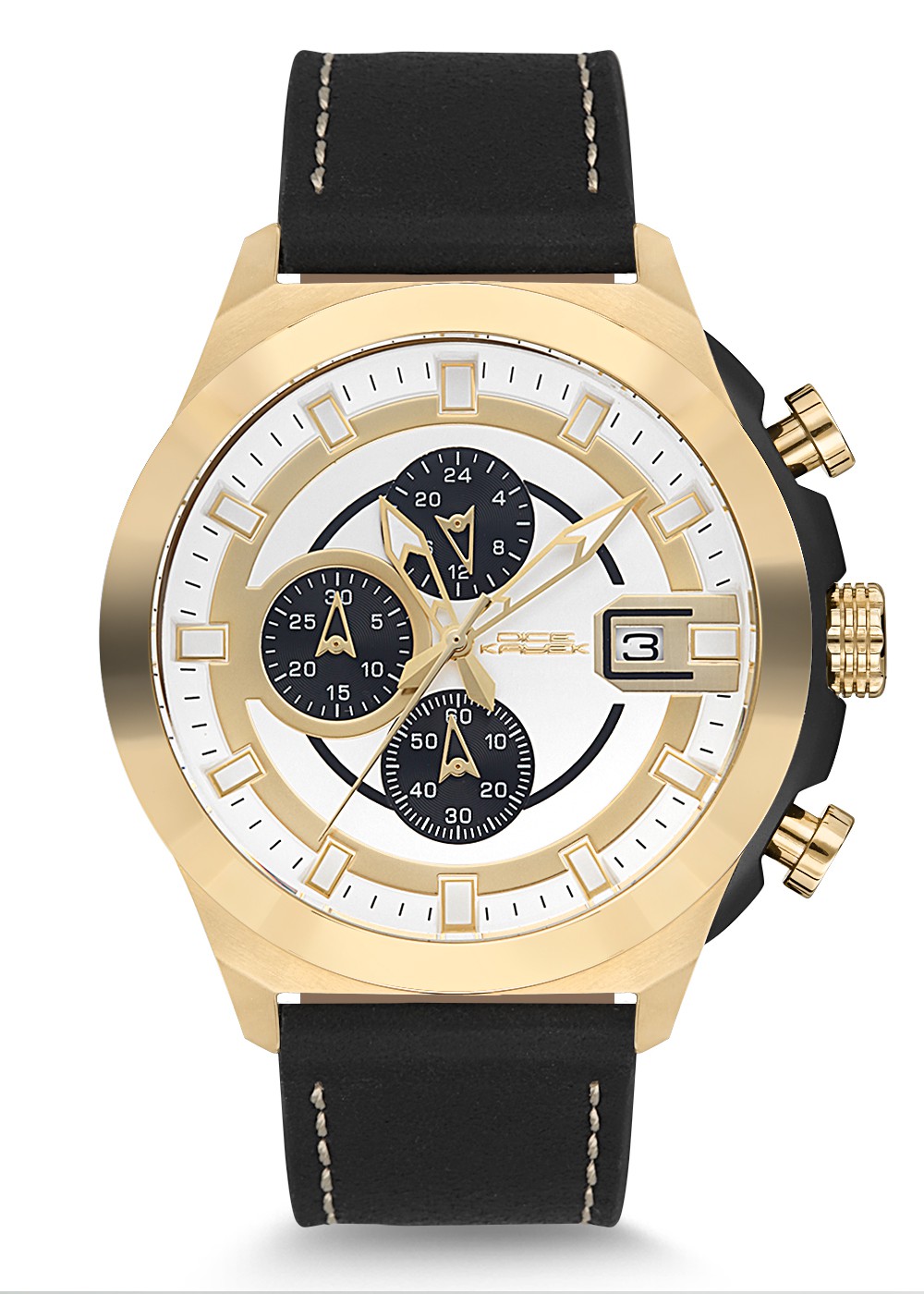 Erkek - Kronometre - Sari - Gümüş - Doğal Deri̇ Kordon - Si̇yah - 3 Atm - Dice Kayek