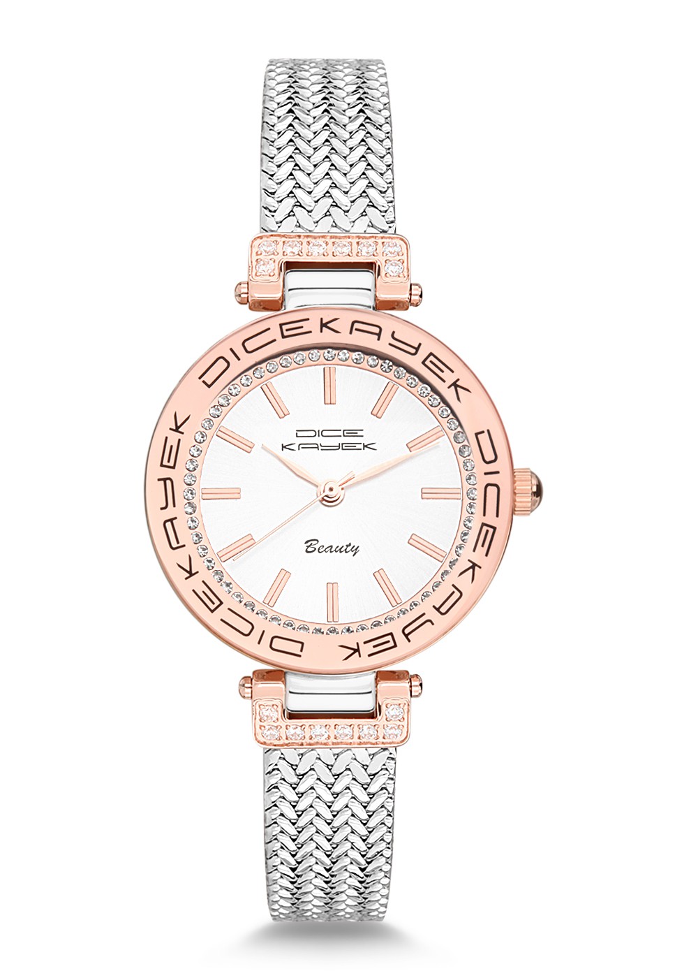 Kadın - Taşli - Rose Beyaz - Gümüş - Çeli̇k Örme Kordon - 3 Atm - Dice Kayek
