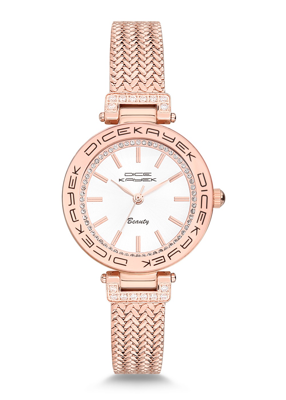 Kadın - Taşli - Rose - Gümüş - Çeli̇k Örme Kordon - 3 Atm - Dice Kayek