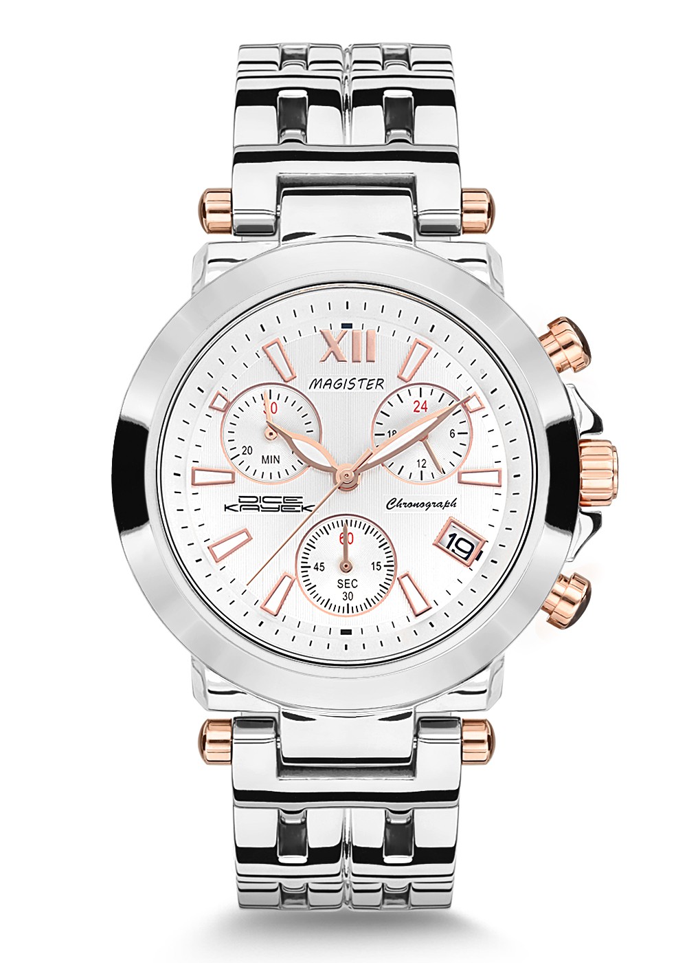 Erkek - Kronometre - Rose Beyaz - Gümüş - Paslanmaz Masi̇f Çeli̇k - 3 Atm - Dice Kayek