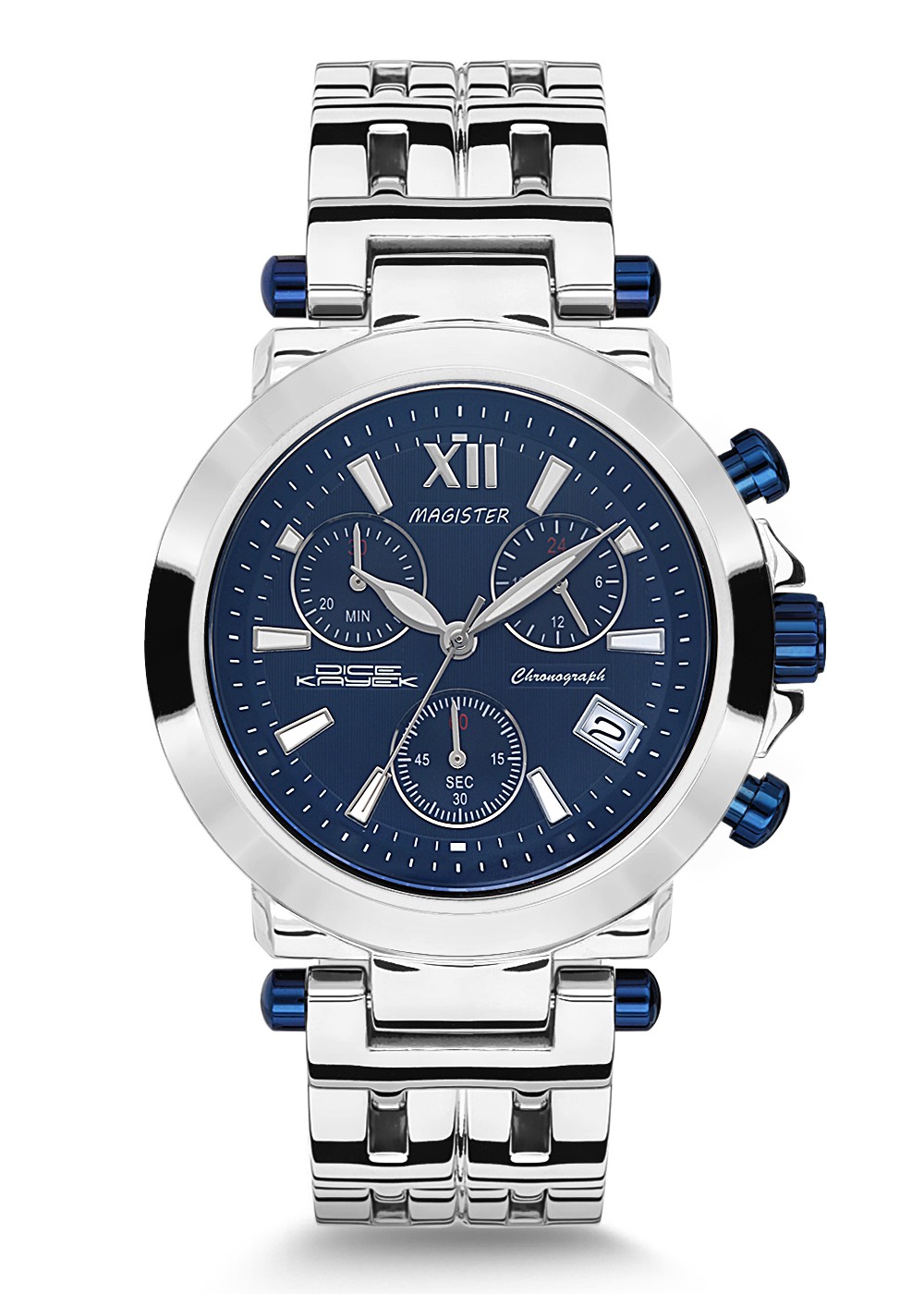 Erkek - Kronometre - Gümüş - Mavi̇ - Paslanmaz Masi̇f Çeli̇k - 3 Atm - Dice Kayek