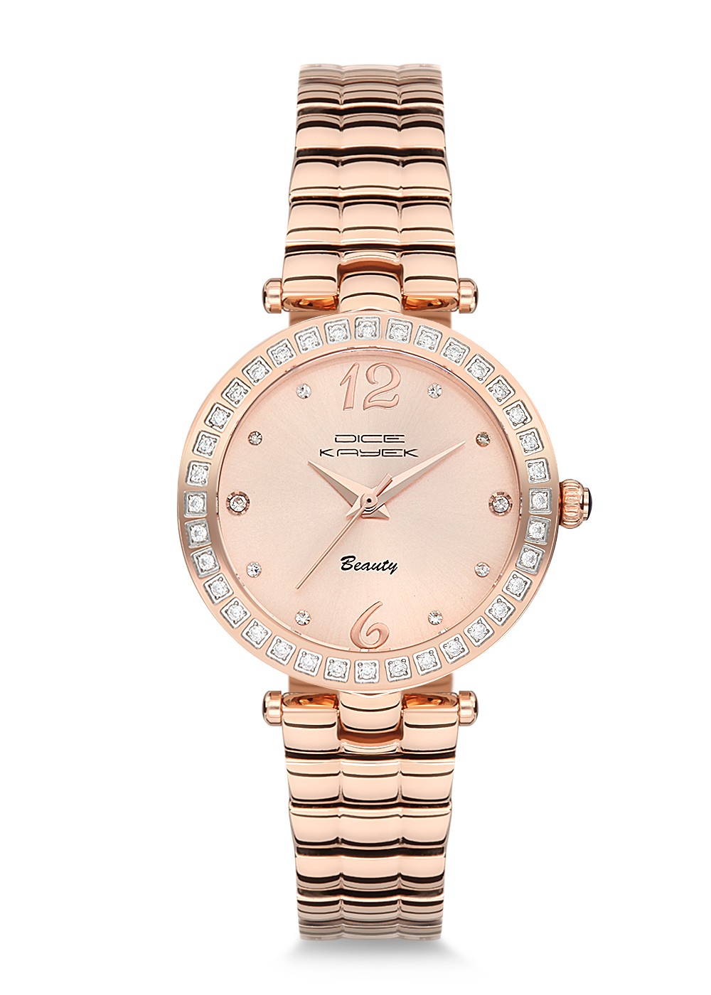 Kadın - Taşli - Rose - Kahverengi̇ - Paslanmaz Masi̇f Çeli̇k - 3 Atm - Dice Kayek
