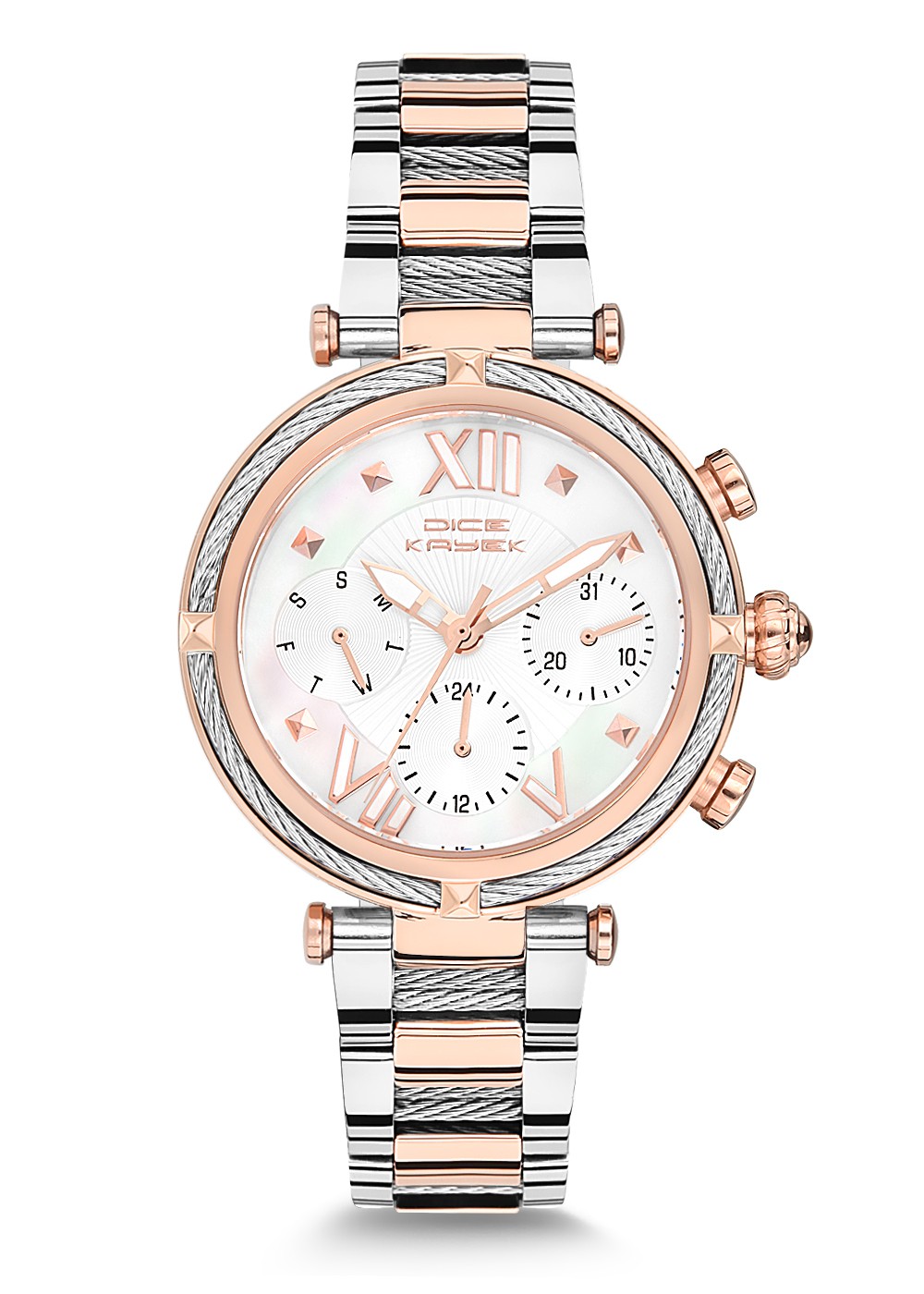 Kadın - Multi̇ Fonksi̇yon - Rose Beyaz - Gümüş - Paslanmaz Masi̇f Çeli̇k - 3 Atm - Dice Kayek