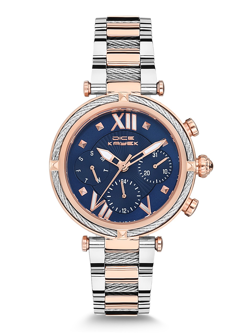 Kadın - Multi̇ Fonksi̇yon - Rose Beyaz - Mavi̇ - Paslanmaz Masi̇f Çeli̇k - 3 Atm - Sertleşti̇ri̇lmi̇ş Mi̇neral Cam - Dice Kayek