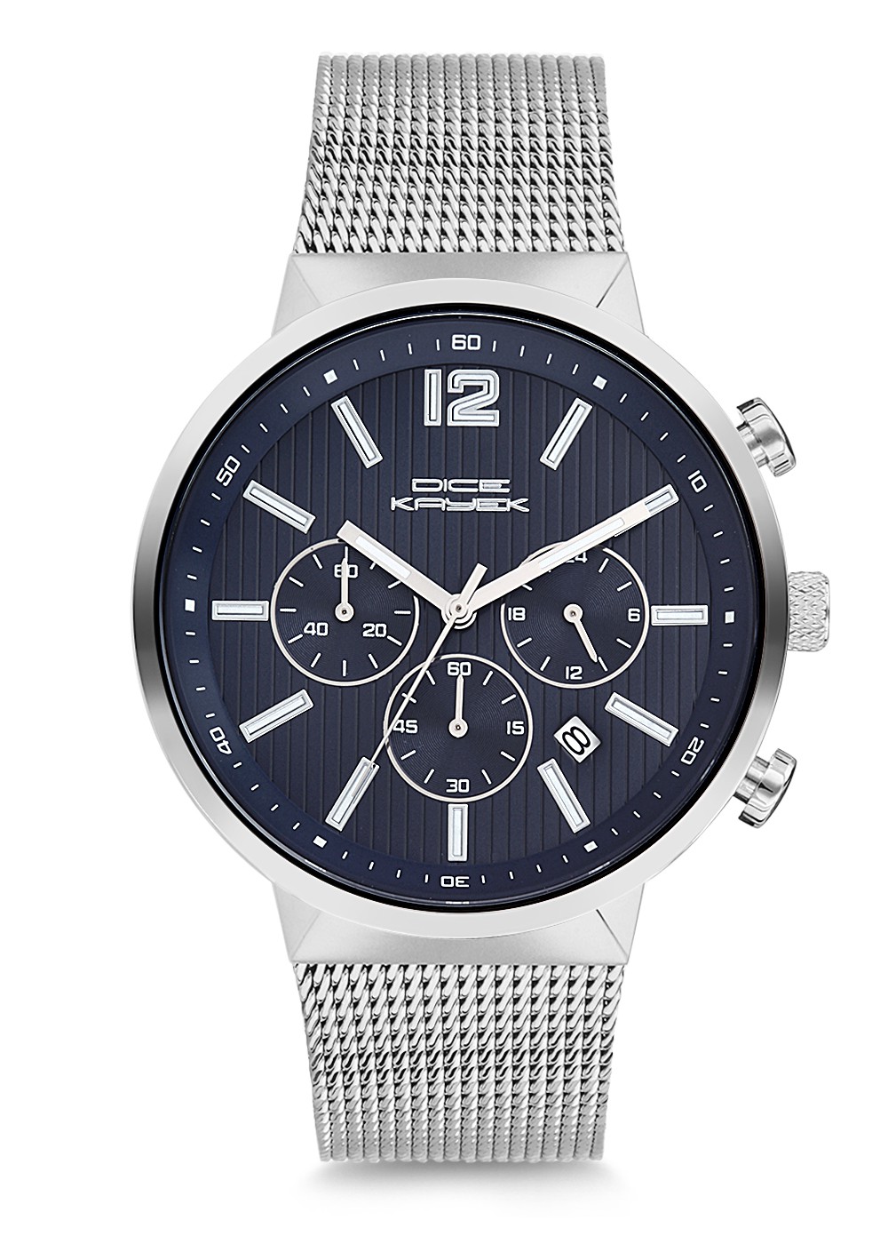 Erkek - Kronometre - Gümüş - Mavi̇ - Paslanmaz Masi̇f Çeli̇k - 3 Atm - Dice Kayek