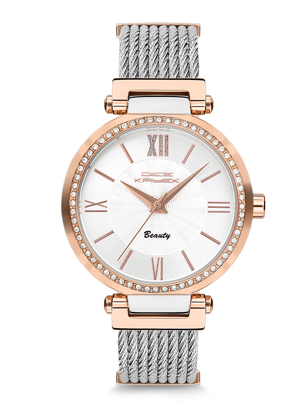 Kadın - Taşli - Rose Beyaz - Gümüş - Paslanmaz Masi̇f Çeli̇k - 3 Atm - Sertleşti̇ri̇lmi̇ş Mi̇neral Cam - Dice Kayek - 36