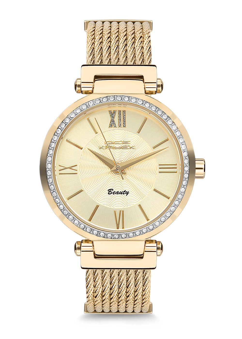 Kadın - Taşli - Sari - Sari - Paslanmaz Masi̇f Çeli̇k - 3 Atm - Sertleşti̇ri̇lmi̇ş Mi̇neral Cam - Dice Kayek - 36