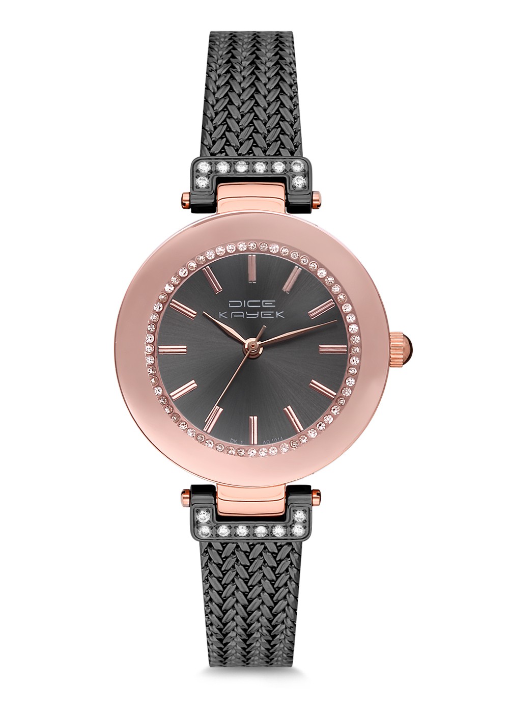 Kadın - Taşli - Rose - Gri̇ - Çeli̇k Örme Kordon - 3 Atm - Dice Kayek