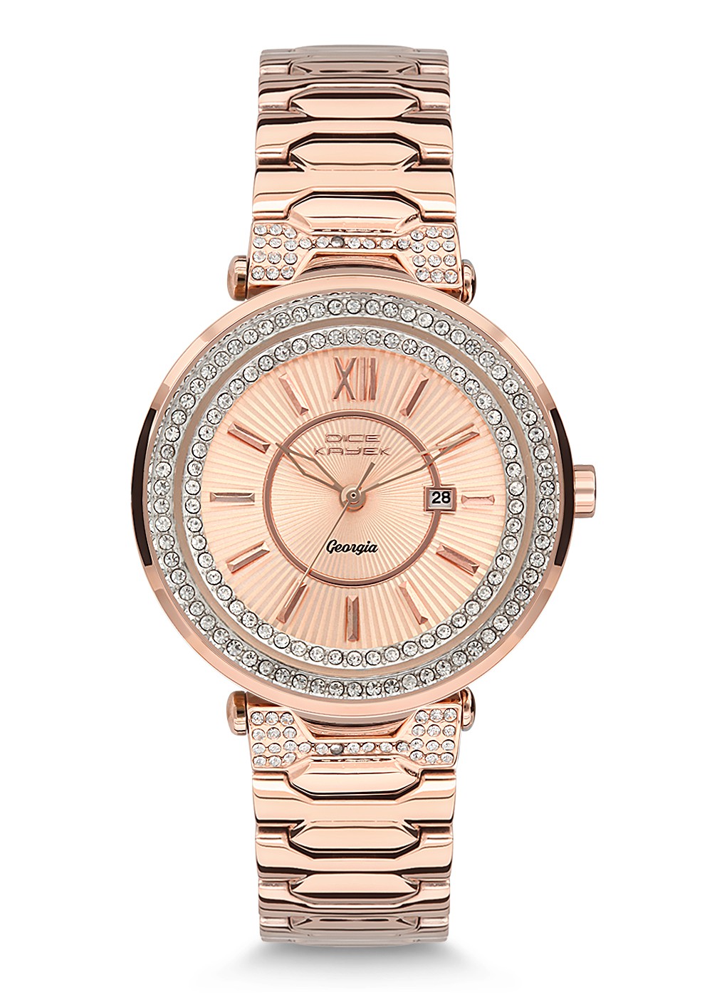 Kadın - Taşli - Rose - Kahverengi̇ - Paslanmaz Masi̇f Çeli̇k - 3 Atm - Dice Kayek