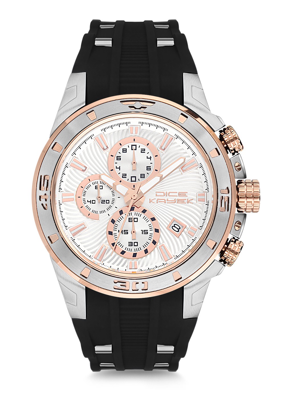 Erkek - Kronometre - Rose Beyaz - Gümüş - Si̇li̇kon - Si̇yah - 3 Atm - Dice Kayek
