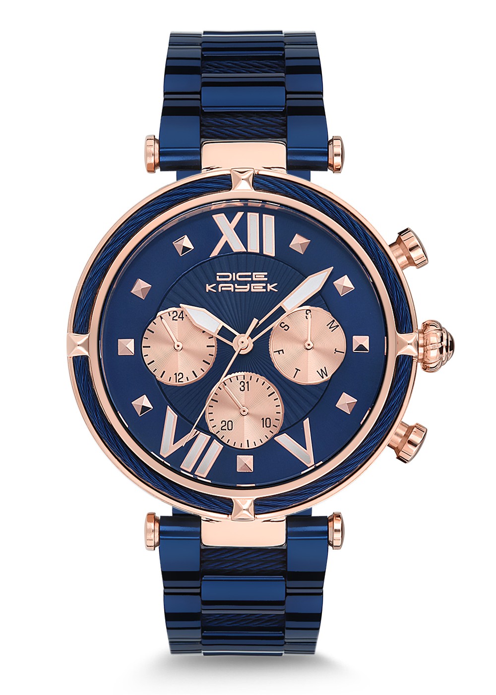 Erkek - Kronometre - Rose Mavi̇ - Mavi̇ - Paslanmaz Masi̇f Çeli̇k - 3 Atm - Dice Kayek