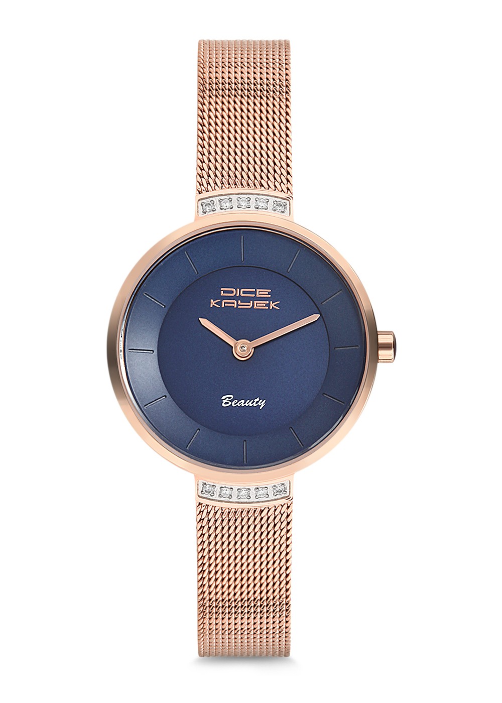 Kadın - Taşli - Rose - Mavi̇ - Çeli̇k Örme Kordon - 3 Atm - Dice Kayek