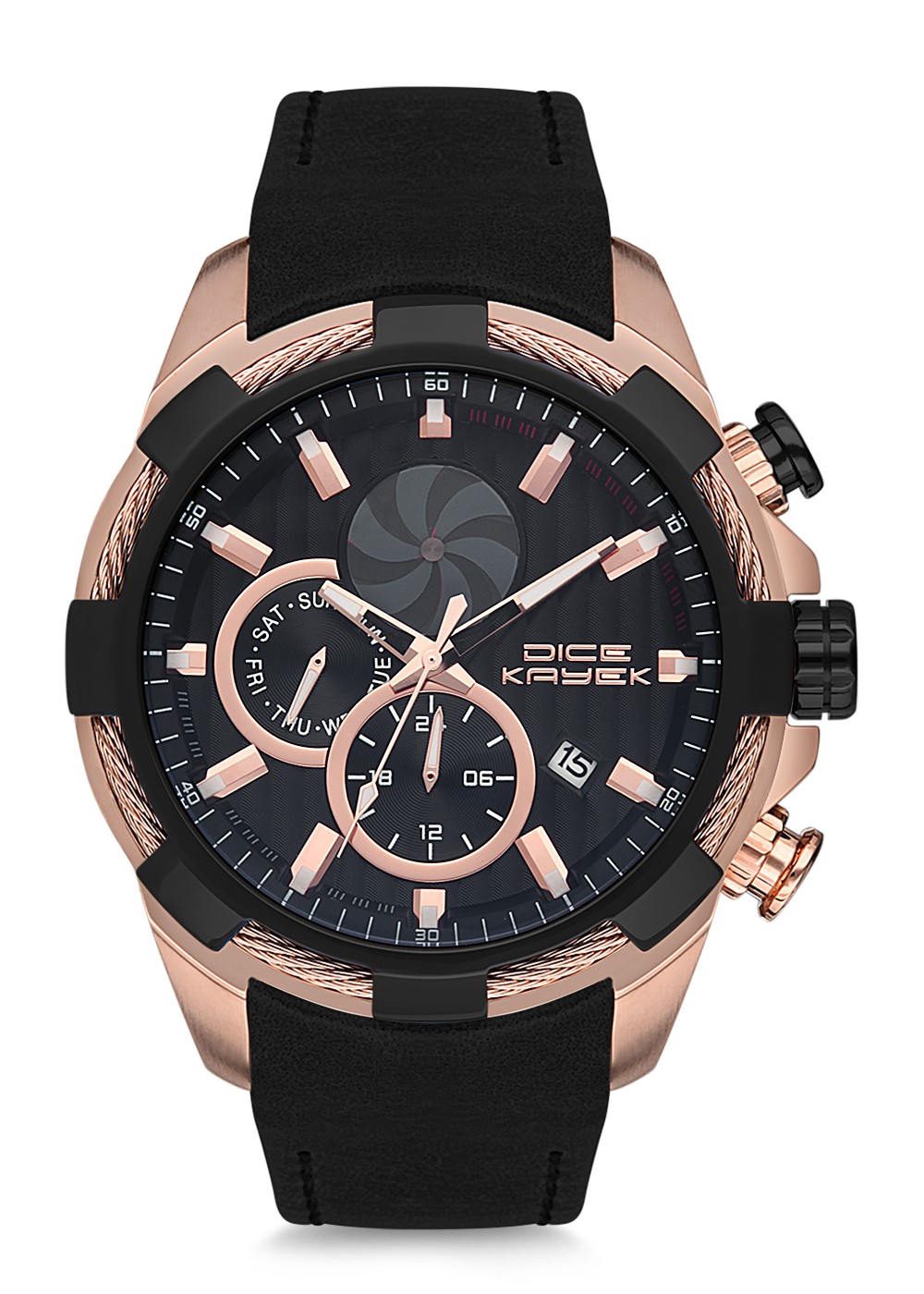 Erkek - Multi̇ Fonksi̇yon - Rose Si̇yah - Si̇yah - Doğal Deri̇ Kordon - Si̇yah - 3 Atm - Dice Kayek