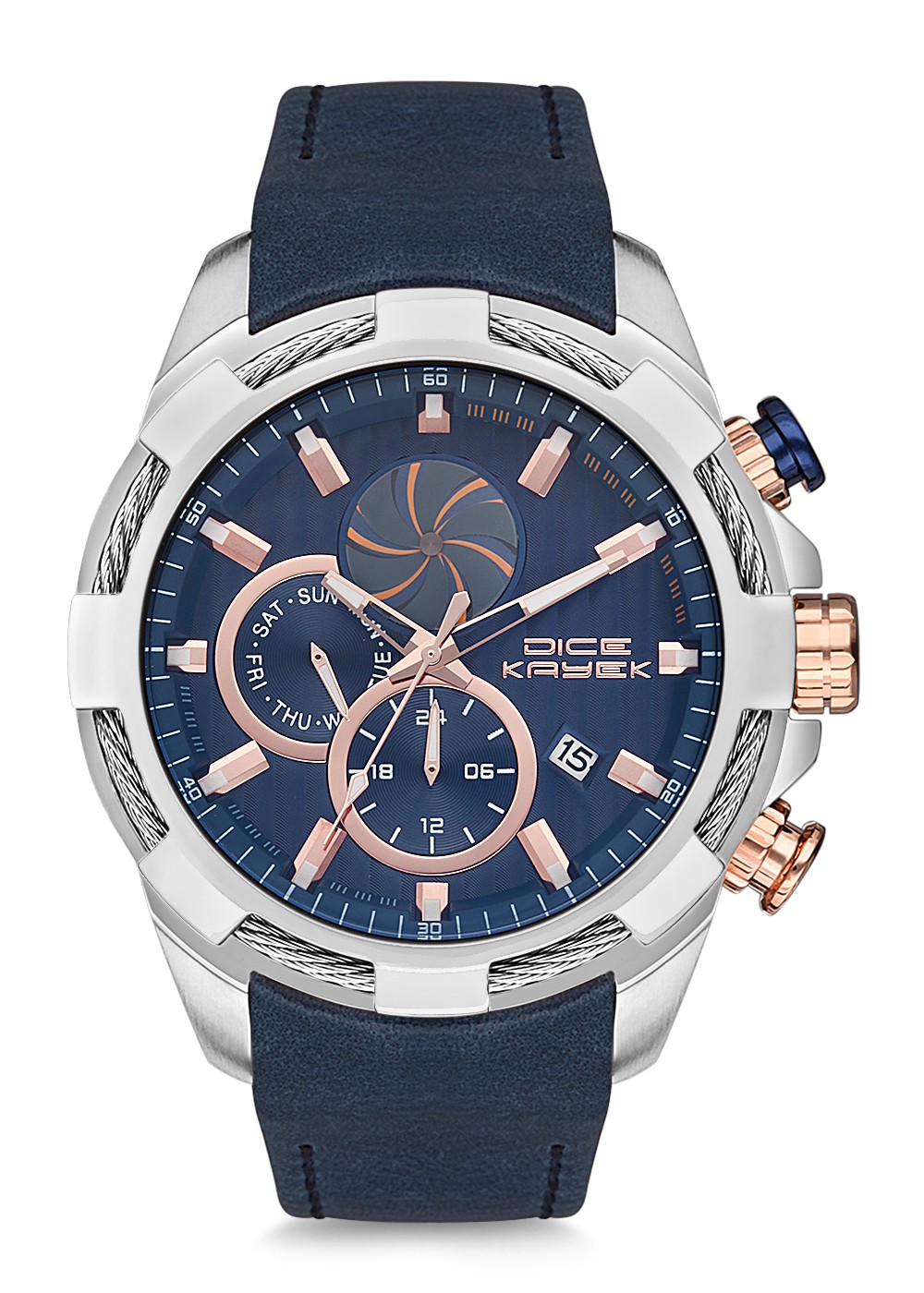 Erkek - Multi̇ Fonksi̇yon - Rose Beyaz - Mavi̇ - Doğal Deri̇ Kordon - Mavi̇ - 3 Atm - Dice Kayek