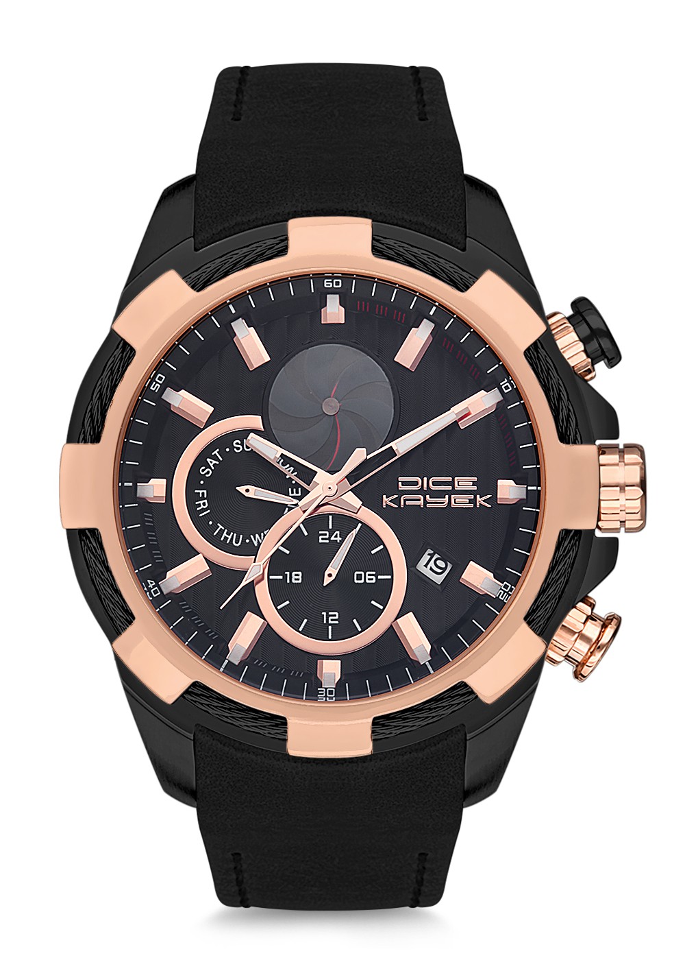 Erkek - Multi̇ Fonksi̇yon - Rose Si̇yah - Si̇yah - Doğal Deri̇ Kordon - Si̇yah - 3 Atm - Dice Kayek