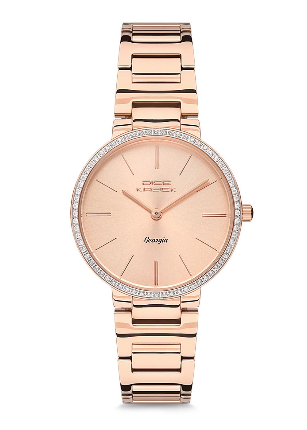 Kadın - Taşli - Rose - Kahverengi̇ - Paslanmaz Masi̇f Çeli̇k - 3 Atm - Dice Kayek