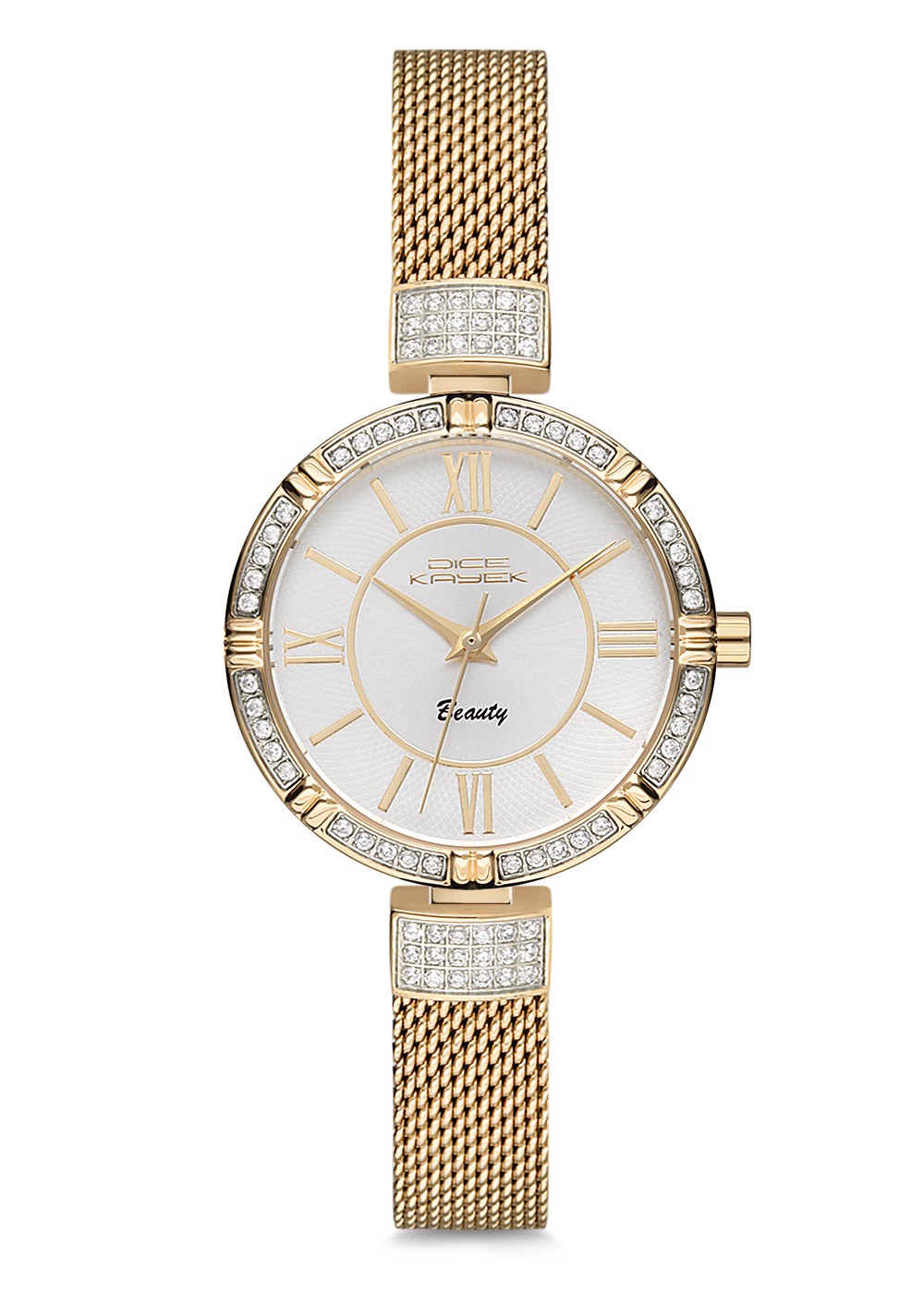 Kadın - Taşli - Sari - Gümüş - Çeli̇k Örme Kordon - 3 Atm - Sertleşti̇ri̇lmi̇ş Mi̇neral Cam - Dice Kayek