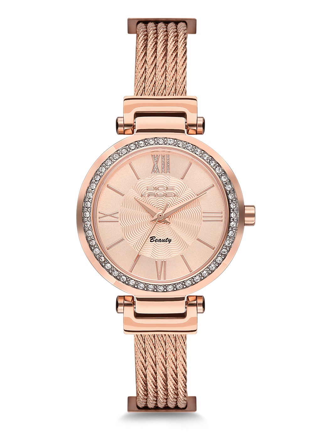 Kadın - Taşli - Rose - Kahverengi̇ - Paslanmaz Masi̇f Çeli̇k - 3 Atm - Dice Kayek