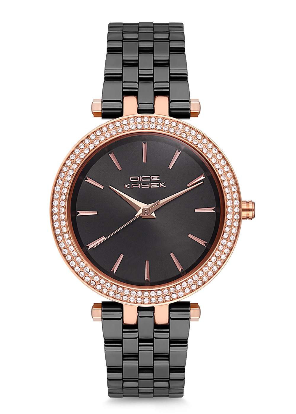 Kadın - Taşli - Rose Si̇yah - Gri̇ - Paslanmaz Masi̇f Çeli̇k - 3 Atm - Sertleşti̇ri̇lmi̇ş Mi̇neral Cam - Dice Kayek - 34