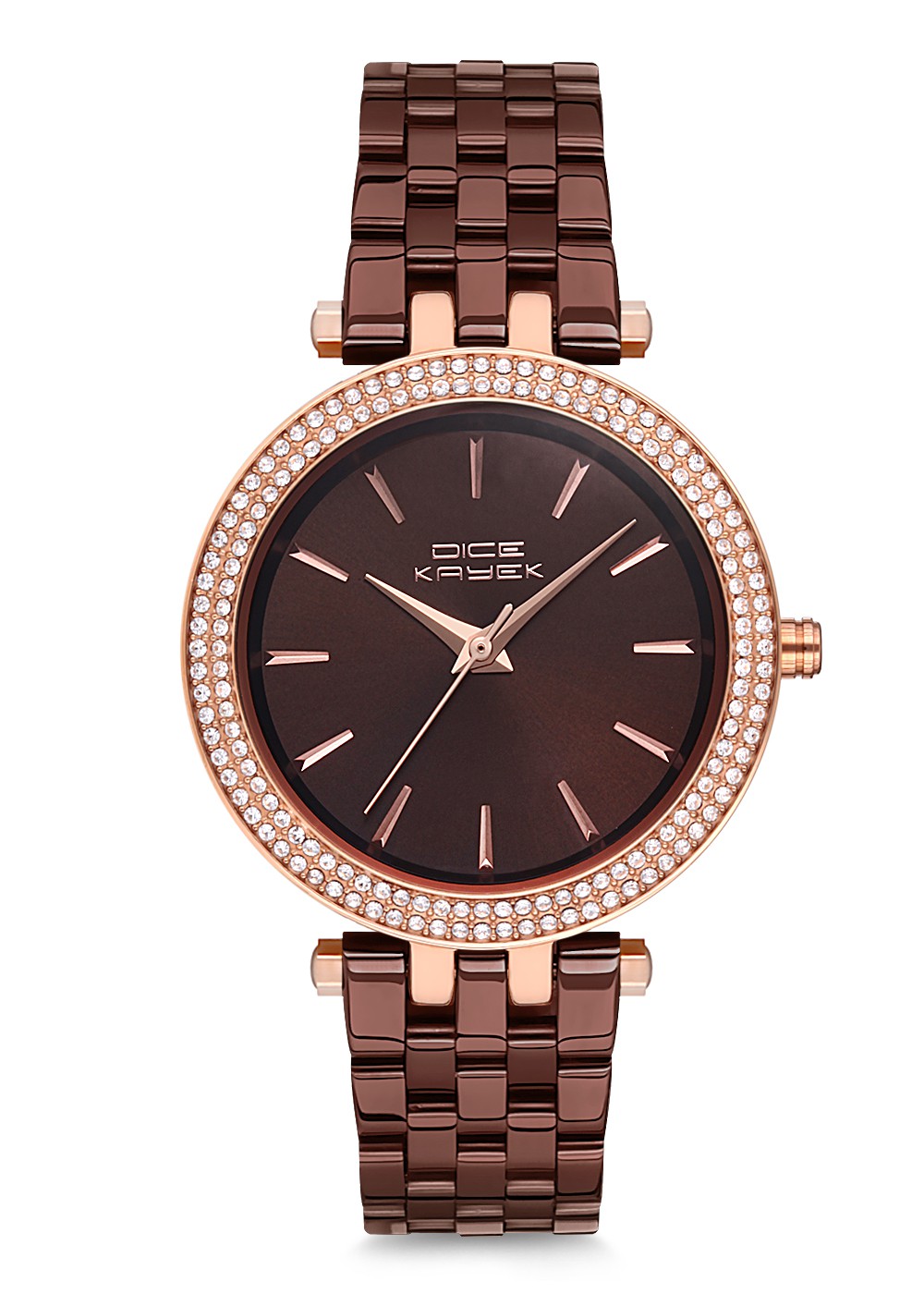 Kadın - Taşli - Rose - Kahverengi̇ - Paslanmaz Masi̇f Çeli̇k - 3 Atm - Sertleşti̇ri̇lmi̇ş Mi̇neral Cam - Dice Kayek - 34