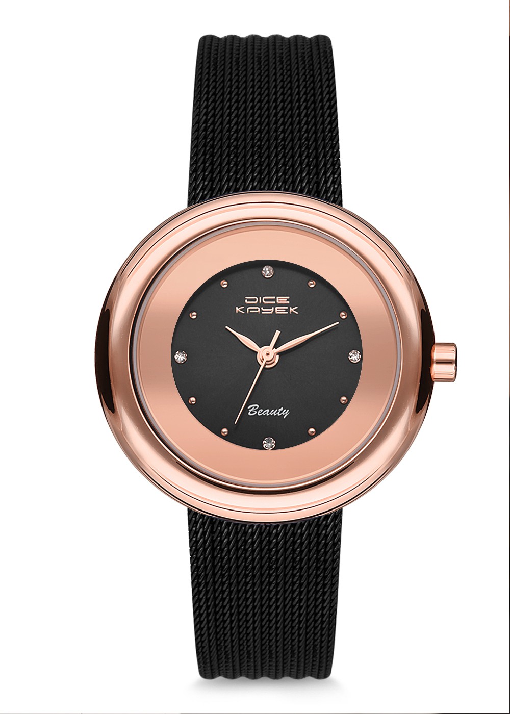 Kadın - Düz - Rose - Si̇yah - Paslanmaz Masi̇f Çeli̇k - 3 Atm - Dice Kayek