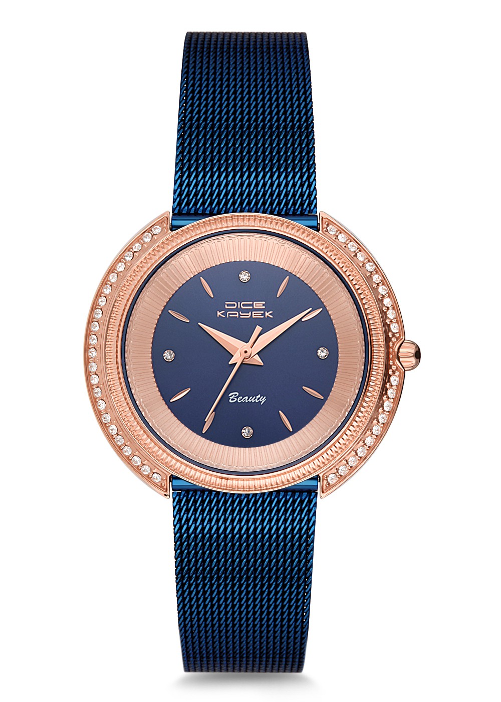 Kadın - Taşli - Rose - Mavi̇ - Çeli̇k Örme Kordon - 3 Atm - Dice Kayek