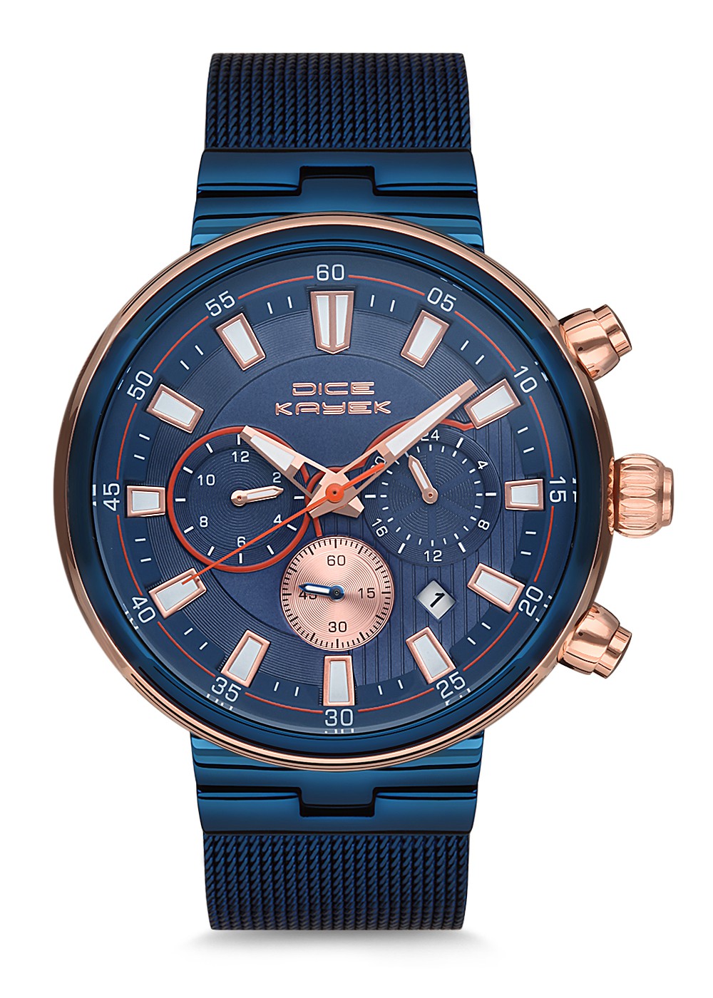 Erkek - Multi̇ Fonksi̇yon - Rose Mavi̇ - Mavi̇ - Paslanmaz Masi̇f Çeli̇k - 3 Atm - Sertleşti̇ri̇lmi̇ş Mi̇neral Cam - Dice Kayek - 46