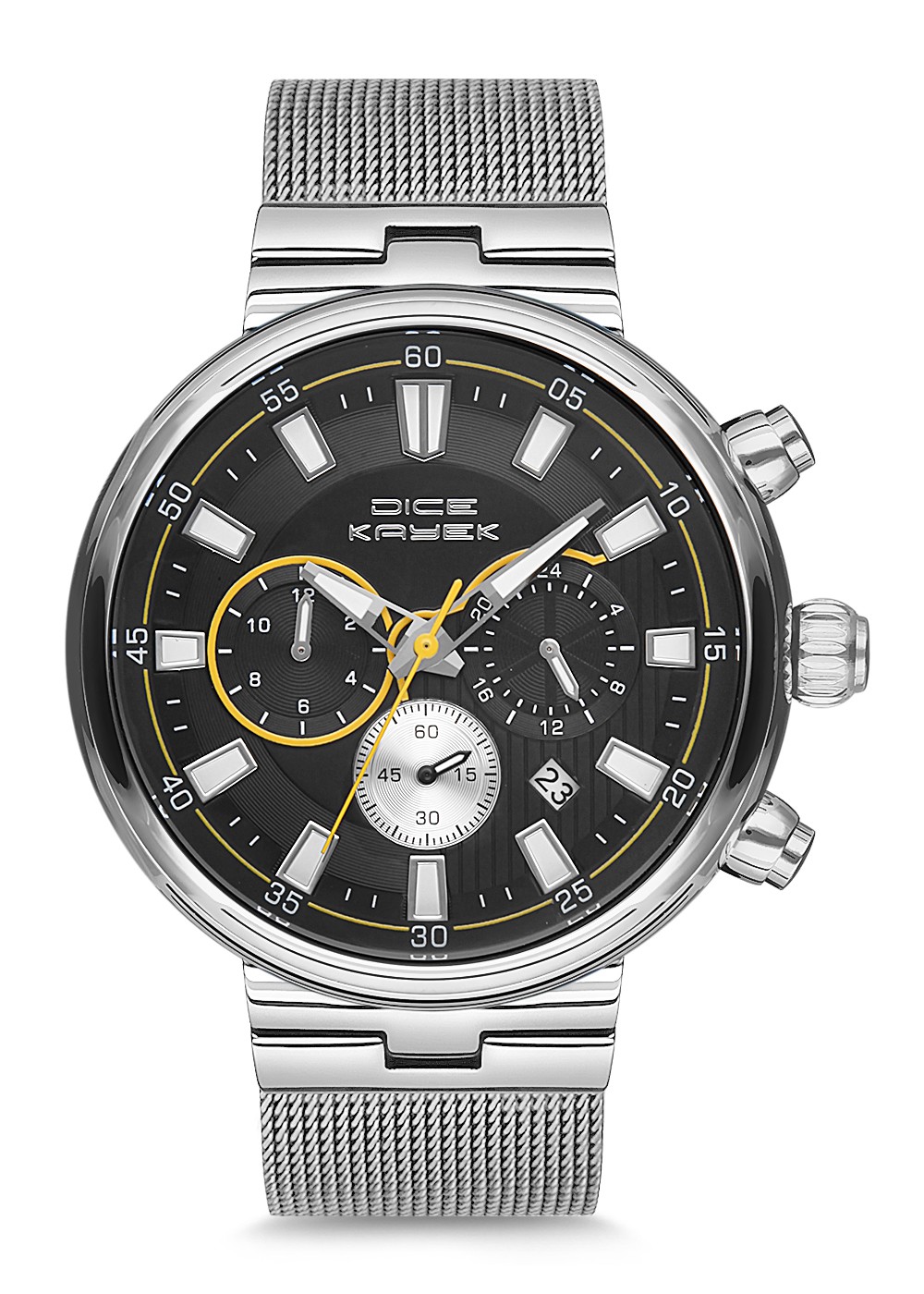 Erkek - Multi̇ Fonksi̇yon - Gümüş - Si̇yah - Paslanmaz Masi̇f Çeli̇k - 3 Atm - Sertleşti̇ri̇lmi̇ş Mi̇neral Cam - Dice Kayek - 46