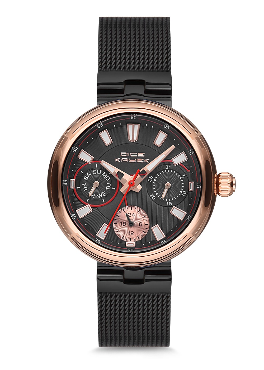 Kadın - Multi̇ Fonksi̇yon - Rose Si̇yah - Si̇yah - Paslanmaz Masi̇f Çeli̇k - 3 Atm - Sertleşti̇ri̇lmi̇ş Mi̇neral Cam - Dice Kayek - 34
