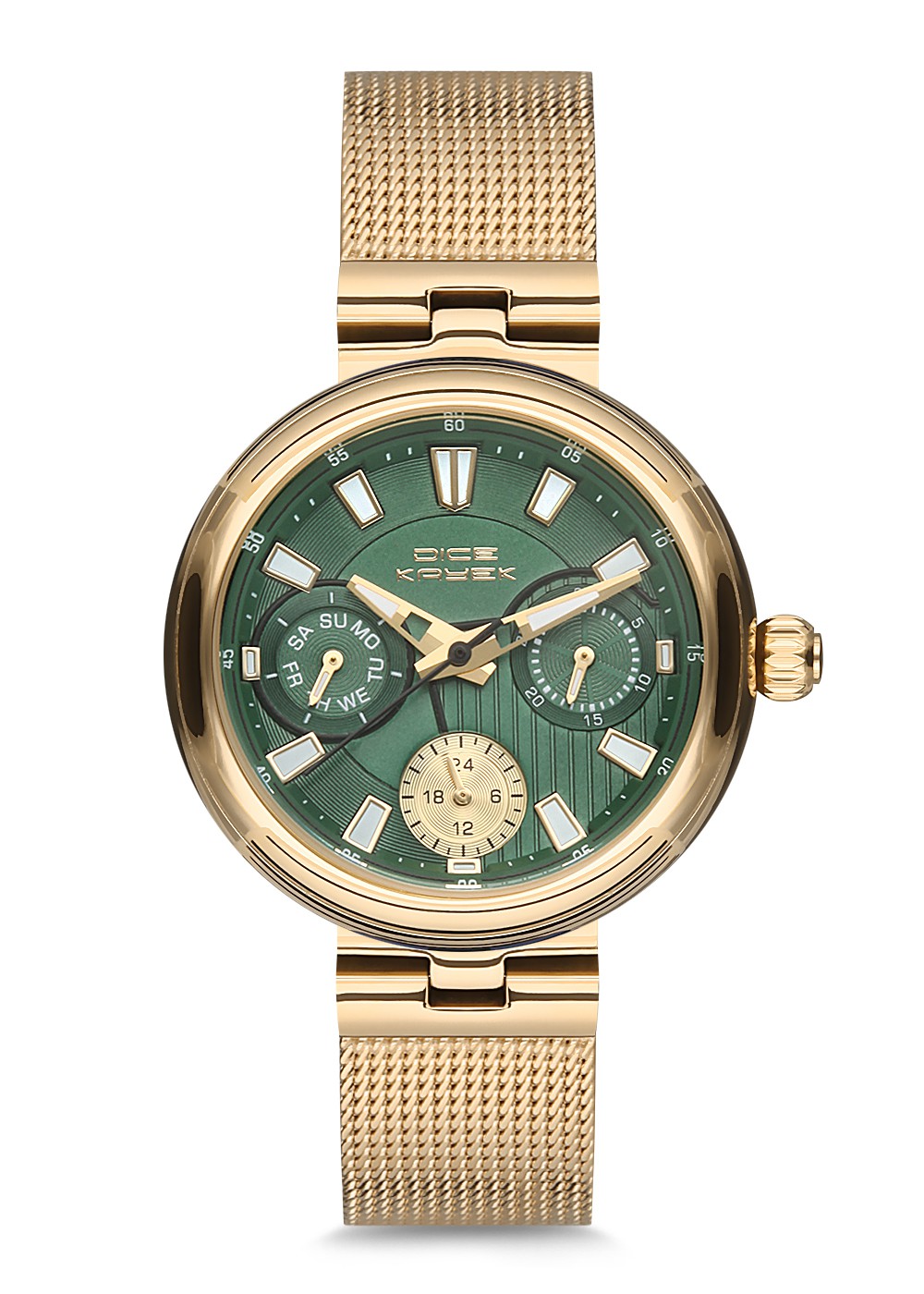 Kadın - Multi̇ Fonksi̇yon - Sari - Yeşi̇l - Paslanmaz Masi̇f Çeli̇k - 3 Atm - Sertleşti̇ri̇lmi̇ş Mi̇neral Cam - Dice Kayek - 34