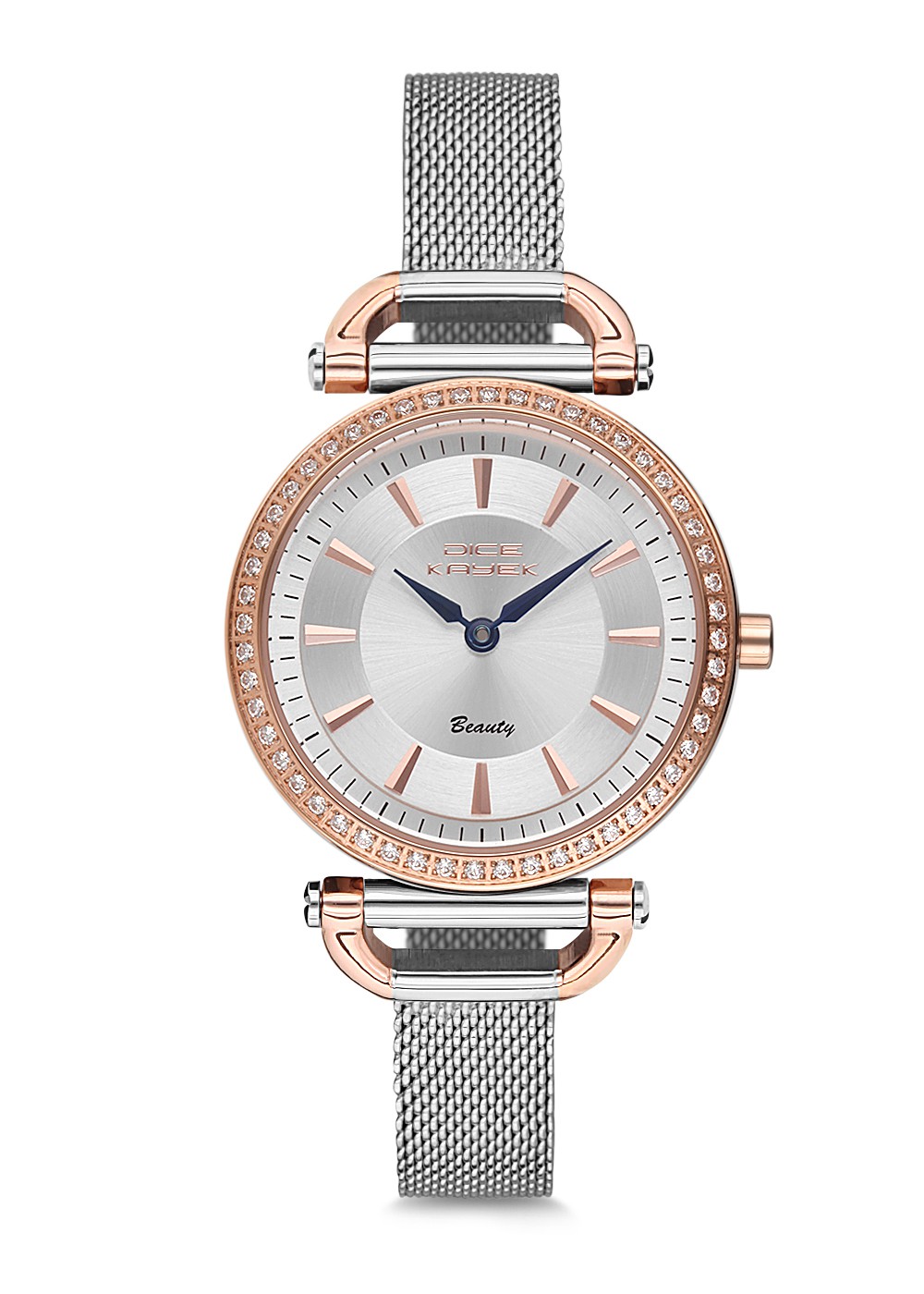 Kadın - Taşli - Rose Beyaz - Gümüş - Paslanmaz Masi̇f Çeli̇k - 3 Atm - Dice Kayek