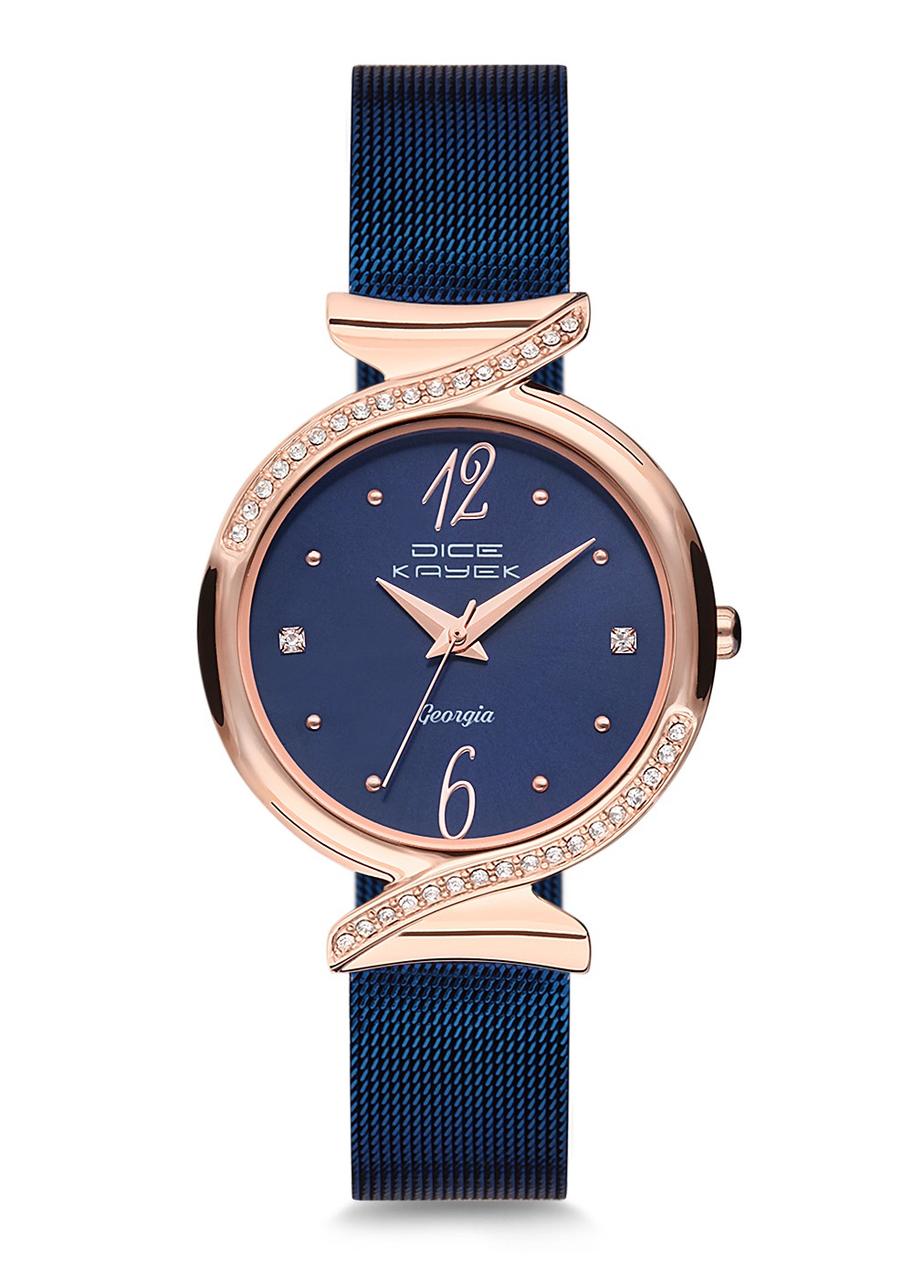 Kadın - Taşli - Rose - Mavi̇ - Çeli̇k Örme Kordon - 3 Atm - Dice Kayek