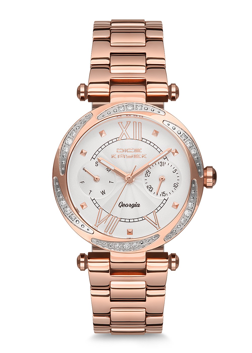Kadın - Multi̇ Fonksi̇yon - Rose - Gümüş - Paslanmaz Masi̇f Çeli̇k - 3 Atm - Sertleşti̇ri̇lmi̇ş Mi̇neral Cam - Dice Kayek