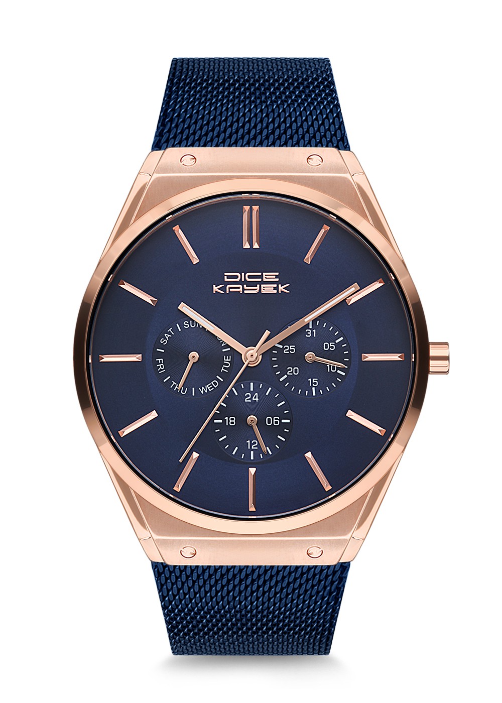 Erkek - Multi̇ Fonksi̇yon - Rose - Mavi̇ - Çeli̇k Örme Kordon - 3 Atm - Sertleşti̇ri̇lmi̇ş Mi̇neral Cam - Dice Kayek
