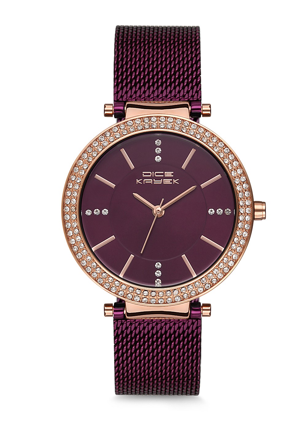 Kadın - Taşli - Rose - Mor - Paslanmaz Masi̇f Çeli̇k - 3 Atm - Dice Kayek