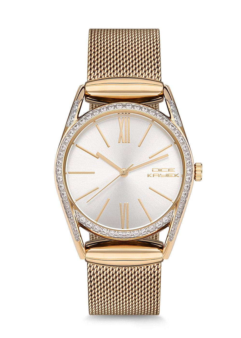 Kadın - Taşli - Sari - Gümüş - Çeli̇k Örme Kordon - 3 Atm - Sertleşti̇ri̇lmi̇ş Mi̇neral Cam - Dice Kayek
