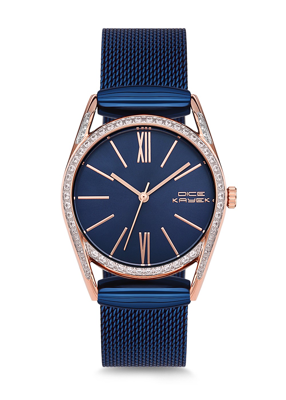Kadın - Taşli - Rose Mavi̇ - Mavi̇ - Çeli̇k Örme Kordon - 3 Atm - Sertleşti̇ri̇lmi̇ş Mi̇neral Cam - Dice Kayek - 32