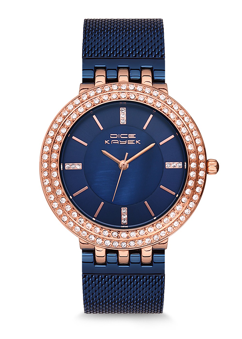 Kadın - Taşli - Rose - Mavi̇ - Paslanmaz Masi̇f Çeli̇k - 3 Atm - Sertleşti̇ri̇lmi̇ş Mi̇neral Cam - Dice Kayek