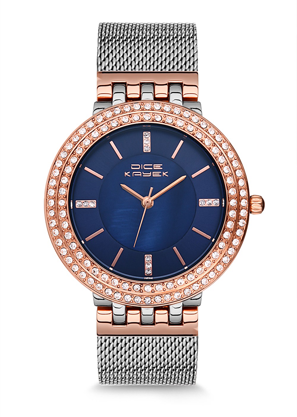 Kadın - Taşli - Rose - Mavi̇ - Çeli̇k Örme Kordon - 3 Atm - Sertleşti̇ri̇lmi̇ş Mi̇neral Cam - Dice Kayek - 32