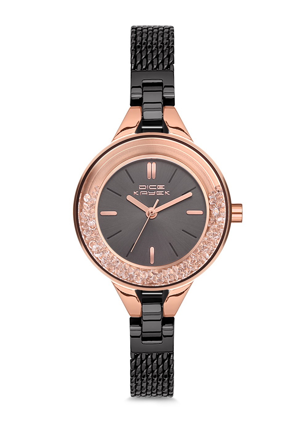 Kadın - Taşli - Rose - Gri̇ - Paslanmaz Masi̇f Çeli̇k - 3 Atm - Dice Kayek