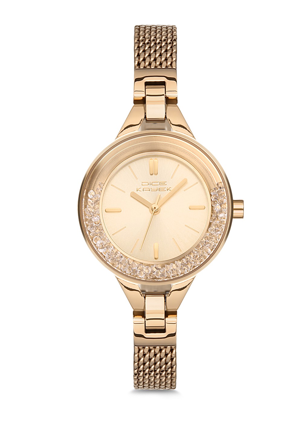 Kadın - Taşli - Sari - Gri̇ - Paslanmaz Masi̇f Çeli̇k - 3 Atm - Sertleşti̇ri̇lmi̇ş Mi̇neral Cam - Dice Kayek