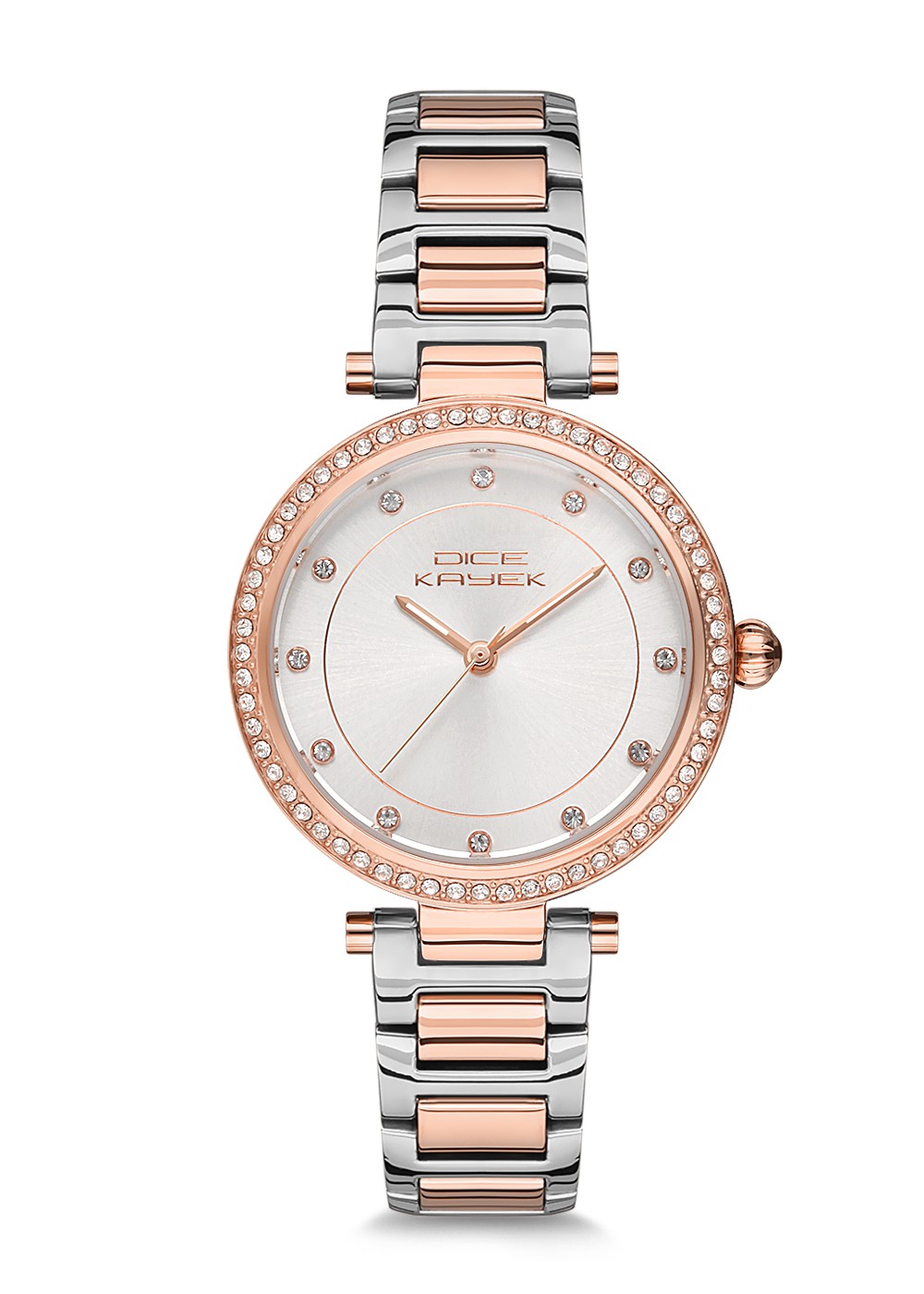 Kadın - Taşli - Rose Beyaz - Gümüş - Paslanmaz Masi̇f Çeli̇k - 3 Atm - Dice Kayek