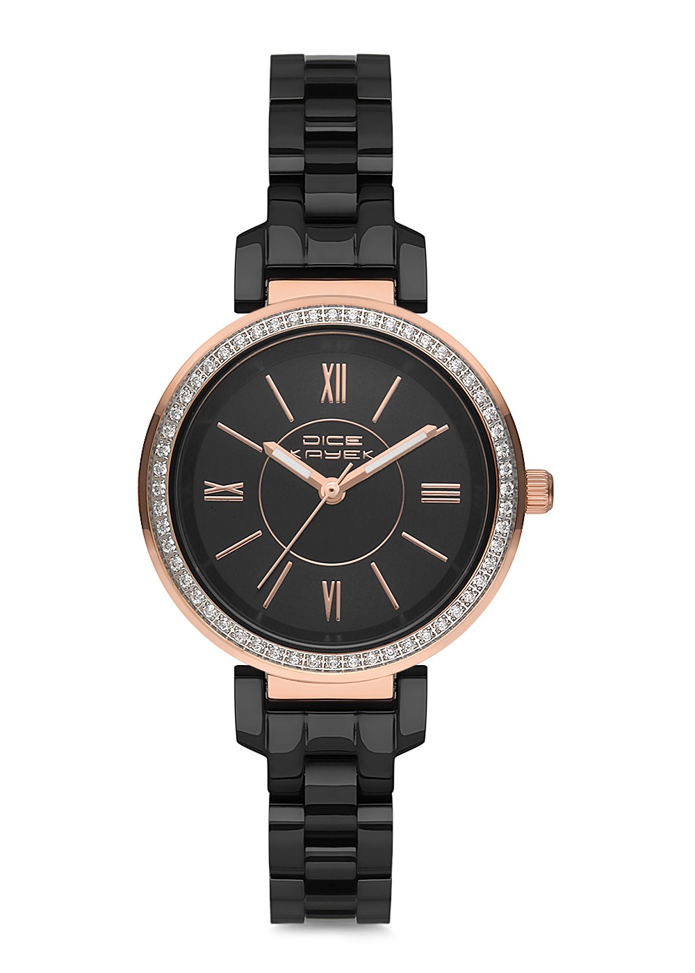 Kadın - Taşli - Rose - Si̇yah - Paslanmaz Masi̇f Çeli̇k - 3 Atm - Dice Kayek