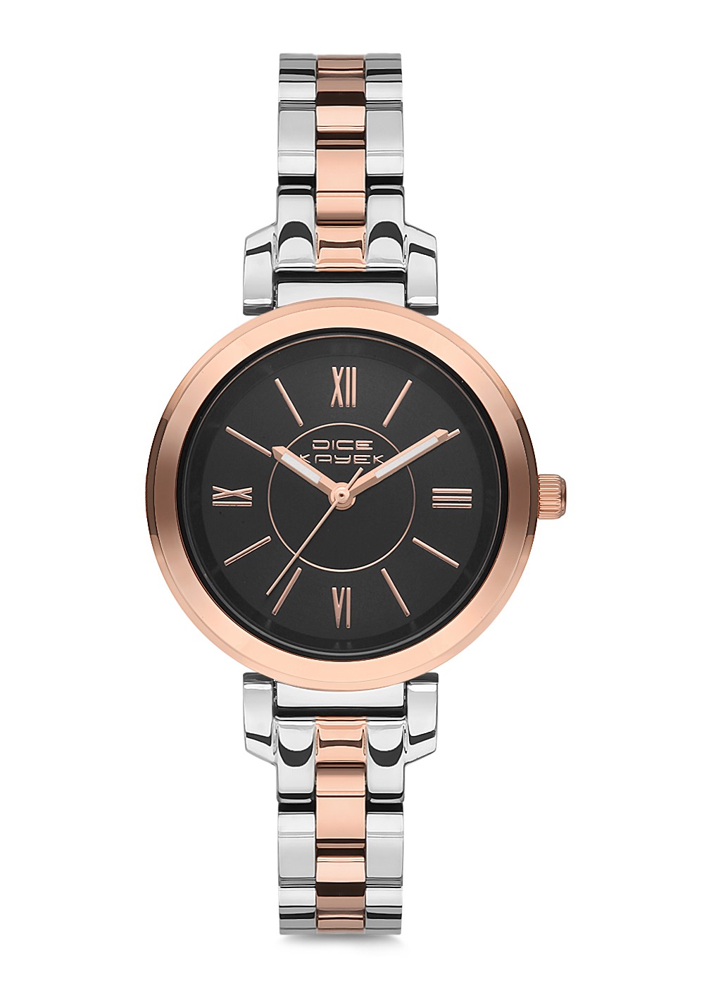 Kadın - Düz - Rose Beyaz - Si̇yah - Paslanmaz Masi̇f Çeli̇k - 3 Atm - Dice Kayek