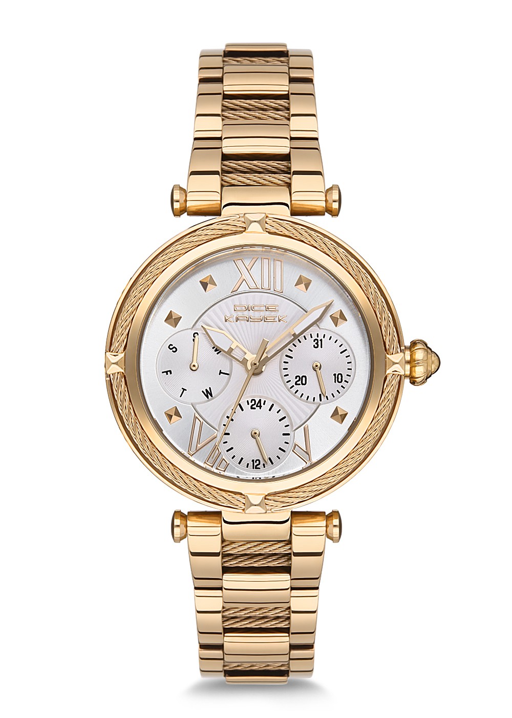 Kadın - Kronometre - Sari - Gümüş - Paslanmaz Masi̇f Çeli̇k - 3 Atm - Sertleşti̇ri̇lmi̇ş Mi̇neral Cam - Dice Kayek