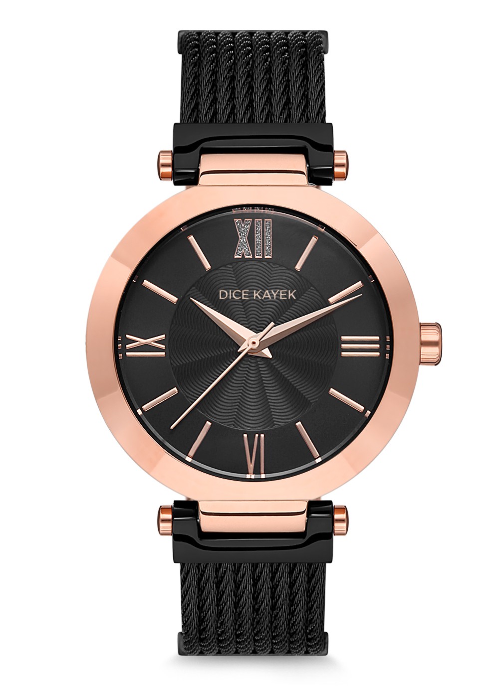 Kadın - Düz - Rose - Si̇yah - Paslanmaz Masi̇f Çeli̇k - 3 Atm - Sertleşti̇ri̇lmi̇ş Mi̇neral Cam - Dice Kayek