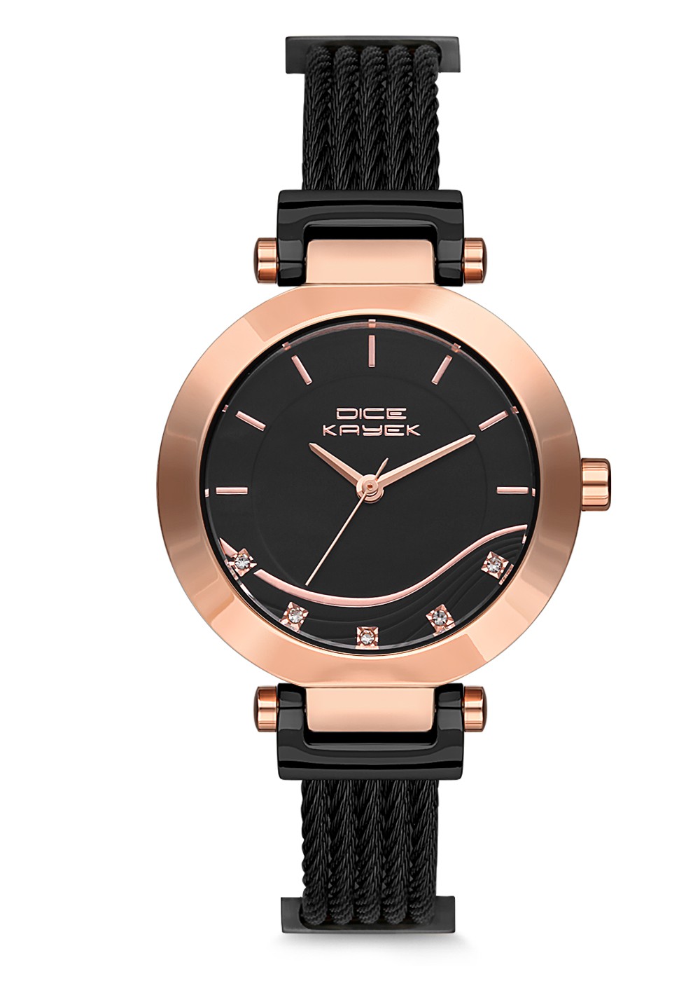 Kadın - Düz - Rose - Si̇yah - Paslanmaz Masi̇f Çeli̇k - 3 Atm - Dice Kayek