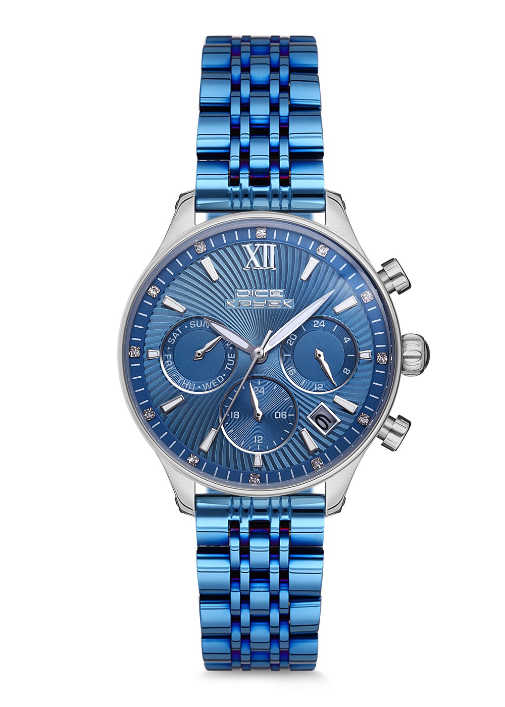 Kadın - Kronometre - Gümüş - Mavi̇ - Paslanmaz Masi̇f Çeli̇k - 3 Atm - Sertleşti̇ri̇lmi̇ş Mi̇neral Cam - Dice Kayek