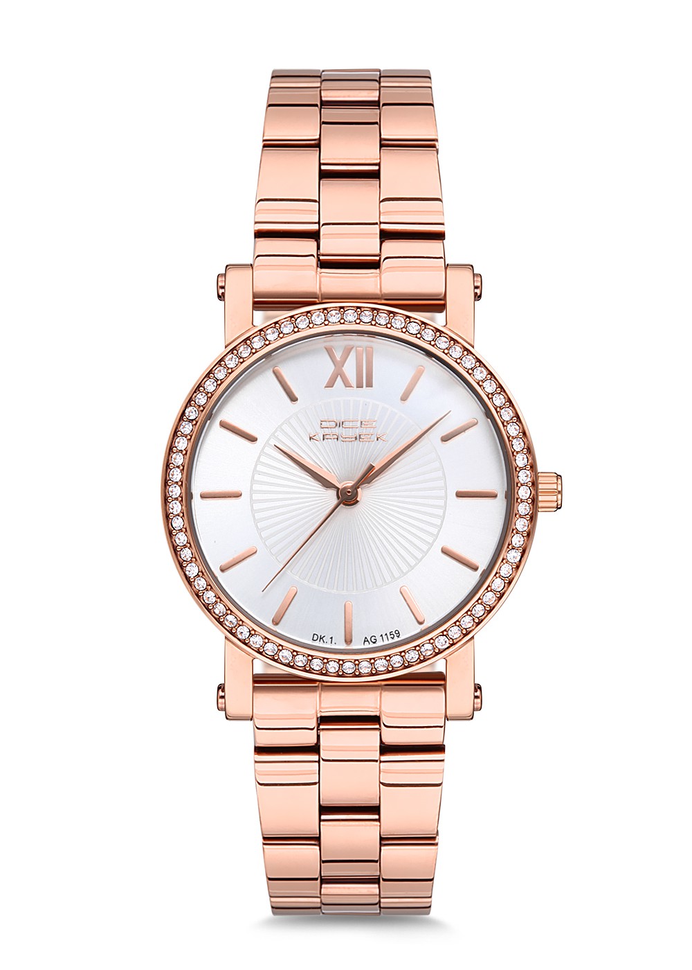 Kadın - Taşli - Rose - Gümüş - Paslanmaz Masi̇f Çeli̇k - 3 Atm - Sertleşti̇ri̇lmi̇ş Mi̇neral Cam - Dice Kayek - 32